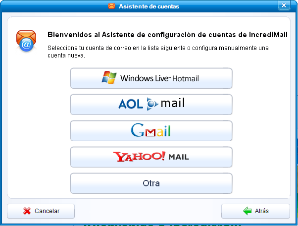 Incredimail nos da la opción de configurar diferentes tipos de cuentas de correo, vamos a proceder con una genérica basada en nuestro dominio y no en uno global.