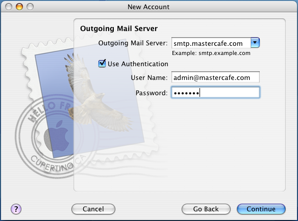 Rellenamos los valores para nuestro servidor de correo saliente (SMTP) normalmente escribiremos smtp.dominio.ext según sea nuestro dominio
