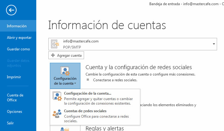Llegamos a la ventana principal de gestión de cuentas de correo y otros conceptos.
